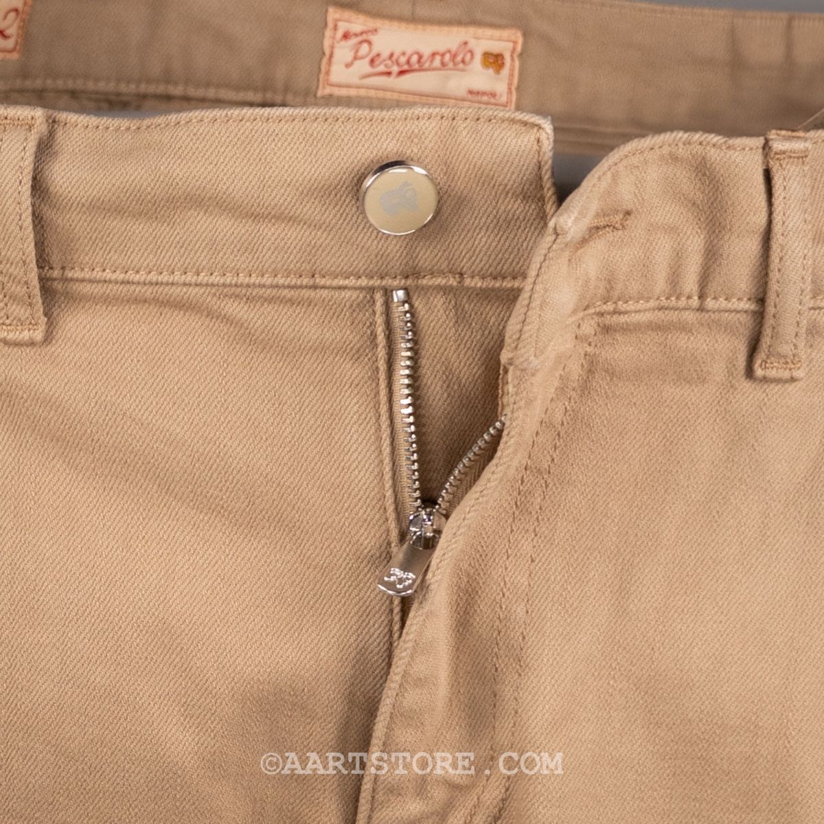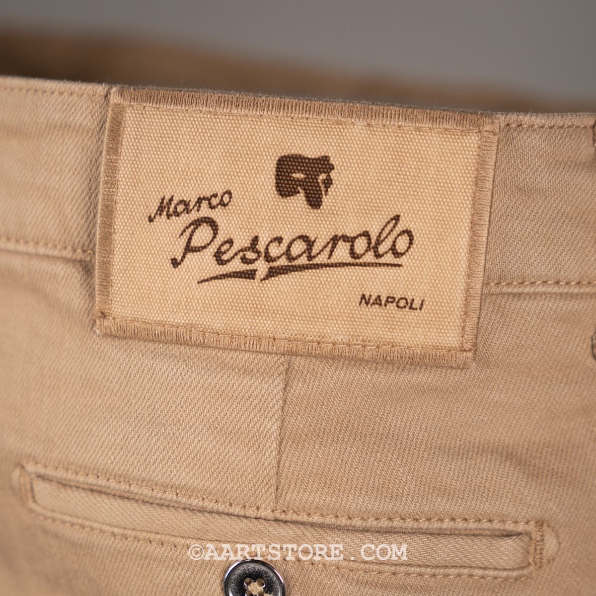 Pescarolo is een Napolitaanse broekenmaker die luxe combineert met een geheel eigen visie op hoe een broek moet zitten en vallen. Een prachtig bedrijf van twee jonge mannen die in staat zijn kunsten en stijlen van voorbije generaties te vertalen naar het nu. De Scott is een kruising van een chino en een jeans, of eigenlijk is het een chino met denim details en in een licht denim materiaal. De Scott heeft een iets wijdere pasvorm op het bovenbeen en één bandplooi. Dat geeft de Scott een hip en eigentijds silhouet dat zowel past bij een jasje maar ook prima gedragen kan worden met een polo of een T-shirt en een kort jack.