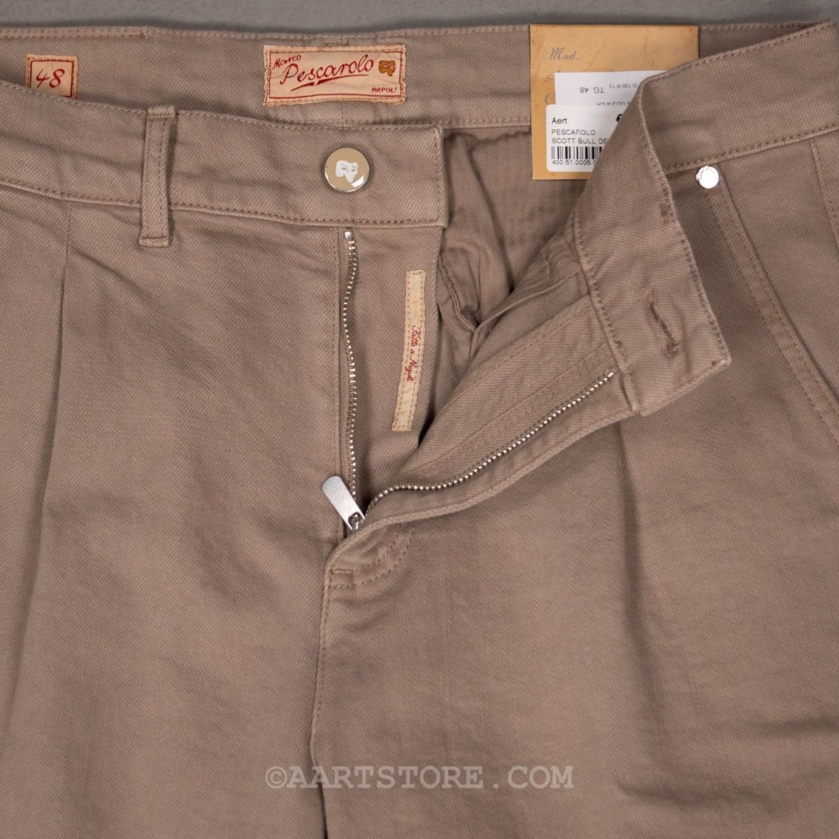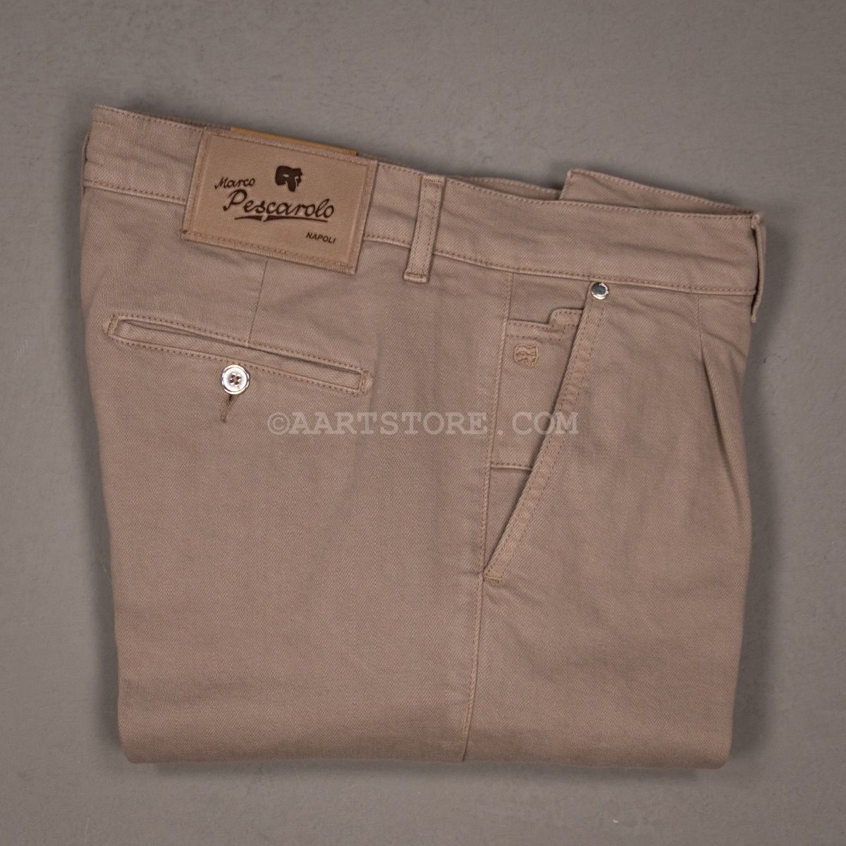Pescarolo is een Napolitaanse broekenmaker die luxe combineert met een geheel eigen visie op hoe een broek moet zitten en vallen. Een prachtig bedrijf van twee jonge mannen die in staat zijn kunsten en stijlen van voorbije generaties te vertalen naar het nu. De Scott is weer (ze verzinnen graag wat nieuws) een nieuw model uit Napels. Het is een kruising van een chino en een jeans, of eigenlijk is het een chino met denim details en in een licht denim materiaal. De Scott heeft een iets wijdere pasvorm op het bovenbeen en één bandplooi. Dat geeft de Scott een hip en eigentijds silhouet dat zowel past bij een jasje maar ook prima gedragen kan worden onder een cashmere trui of T-shirt en een kort jack.