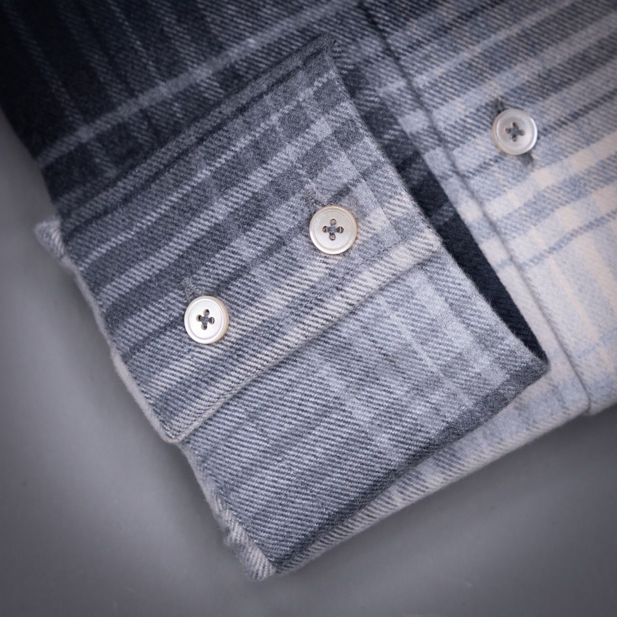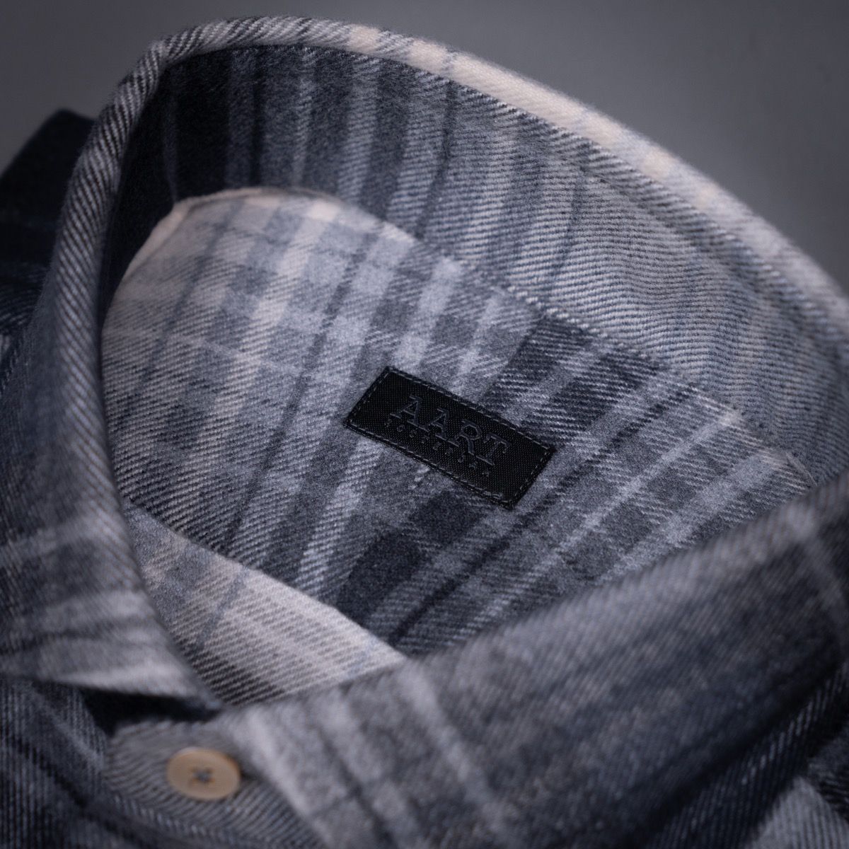 Laboratorio del Carmine is een mooi familiebedrijf uit Bergamo, Noord-Italië. Het mooie is dat de shirts Italiaanse flair combineren met Zwitserse precisie en betrouwbaarheid. Veel handgemaakte details, prachtige doeken en een elegante, slanke pasvorm. Dit exemplaar si gemaakt van een lekker dikke flanel, zacht, warm en luxe. Door de ingetogen kleurstelling is het verre van een houthakkershemd, eerder iets dat je draagt voor gezelligheid, eventueel in de sneeuw.