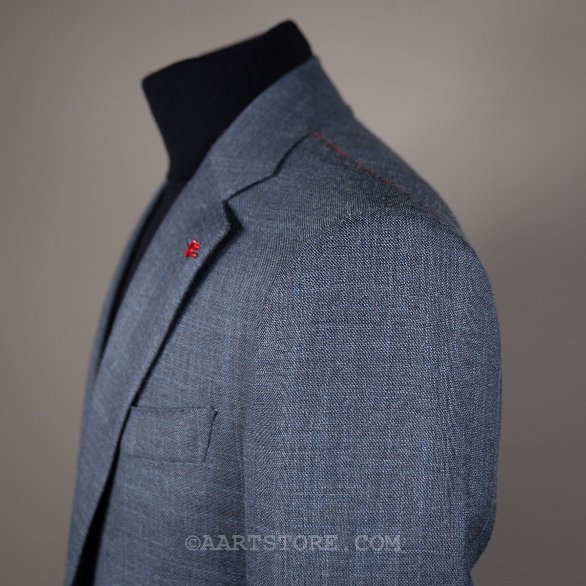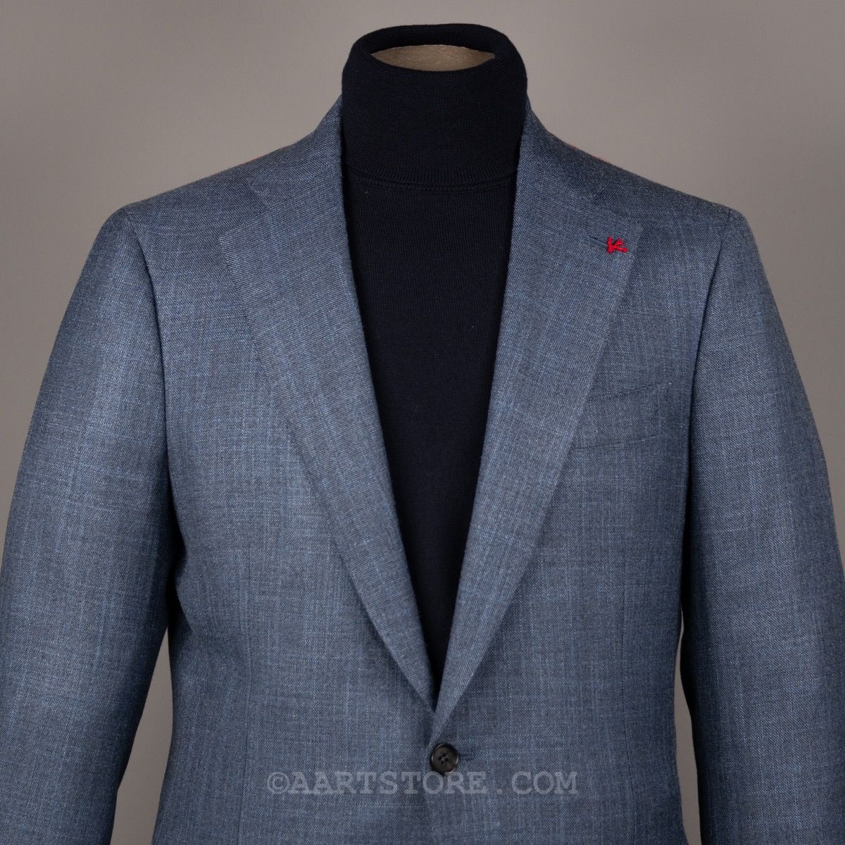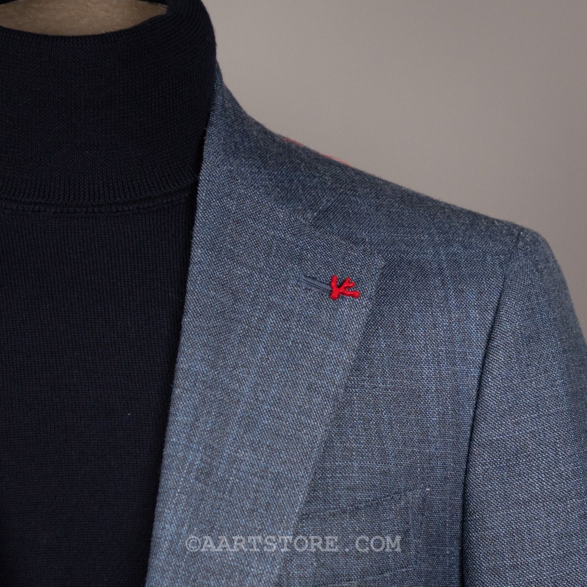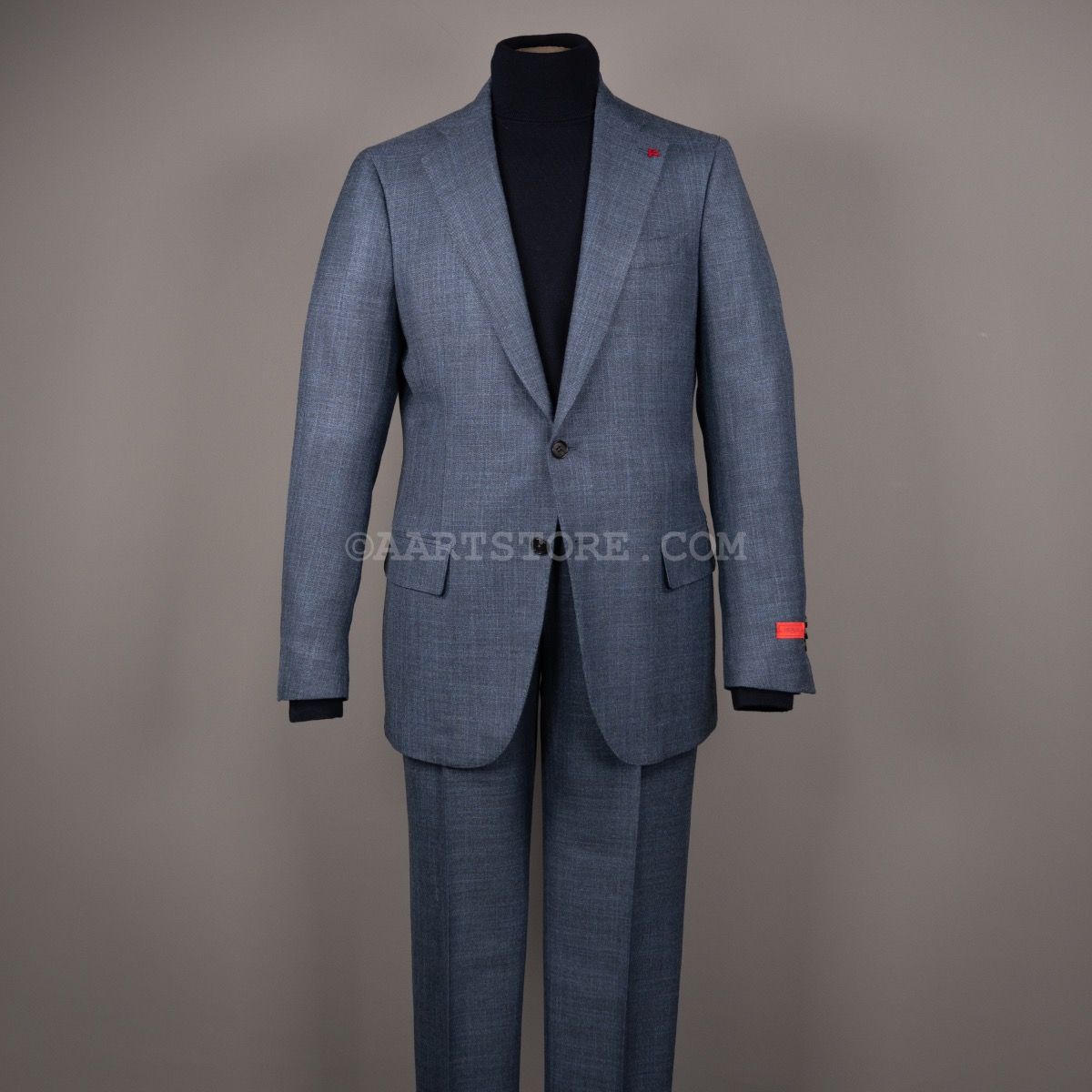 Isaia is synoniem met de absolute top in Napolitaanse kleermakerskunst. De mooist materialen en heel veel handwerk maken het unieke stuks die je als drager omarmen en verwennen. De pakken en jasjes van dit Iconische Napolitaanse merk worden helemaal met de hand gemaakt en dat zie en voel je. De pasvorm is aan het lichaam gesneden, maar het voelt nooit belemmerend of zwaar. De ware kunst zit in het draagcomfort in combinatie met de elegante pasvorm. Dit pak is gesneden uit een tijdloze sharkskin. Door het gebruik van twee kleuren draden heeft de stof een rijke schakering aan tinten, zonder dat het opvallend is. JFK droeg dit type pak bijna altijd, in grijs, de meest voorkomende kleur. Precies dat maakt dit Isaia pak uniek, de kleur. De denimblauwe tint is bijzonder maar wel ook bijzonder draagbaar, zowel met een truitje of gewoon met een shirt en das: prachtig.