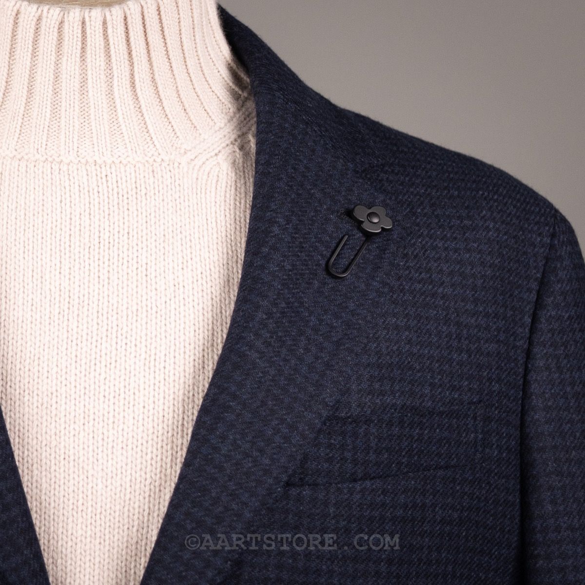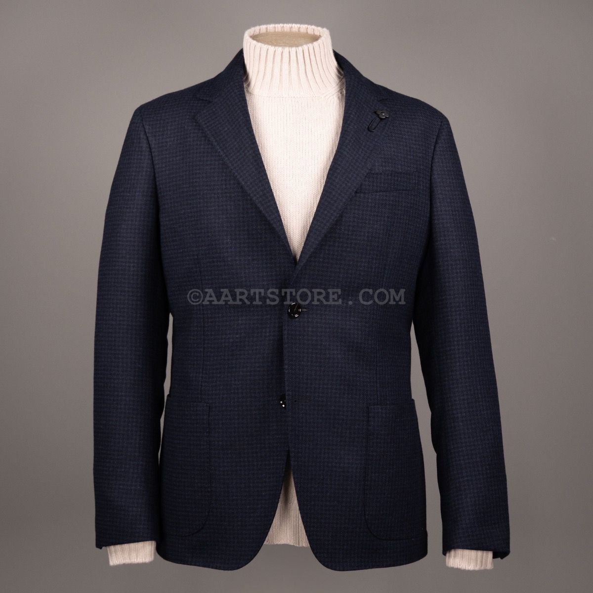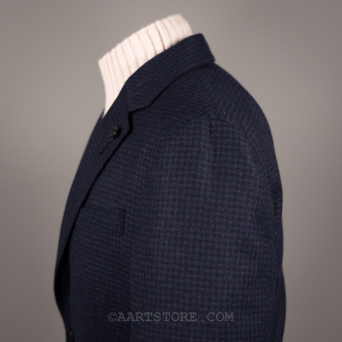 Lardini heeft een heel eigen kijk op de goed geklede man. Jasjes gemaakt met een soort relaxte touch, maar toch wel draagbaar voor meer formele aangelegenheden. Het idee is dat de colberts gemaakt zijn met minimale structuur, maar net voldoende om wel de kleermakers uitstraling te behouden; uniek en prachtig. Dit jasje is andermaal een nieuwe interpretatie van een Britse classic. De navy houndstooth heeft een verfijnd sportieve uitstraling maar is praktisch net zo draagbaar als een blazer. Dit is een jasje dat zowel dressy als iets meer casual te dragen is: mooi bij een flanel broek, maar net zo goed bij denim. Wij zouden het dragen met een wit shirt en een donkere jeans.