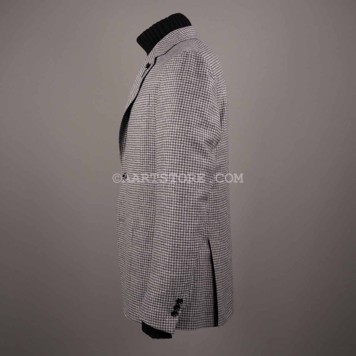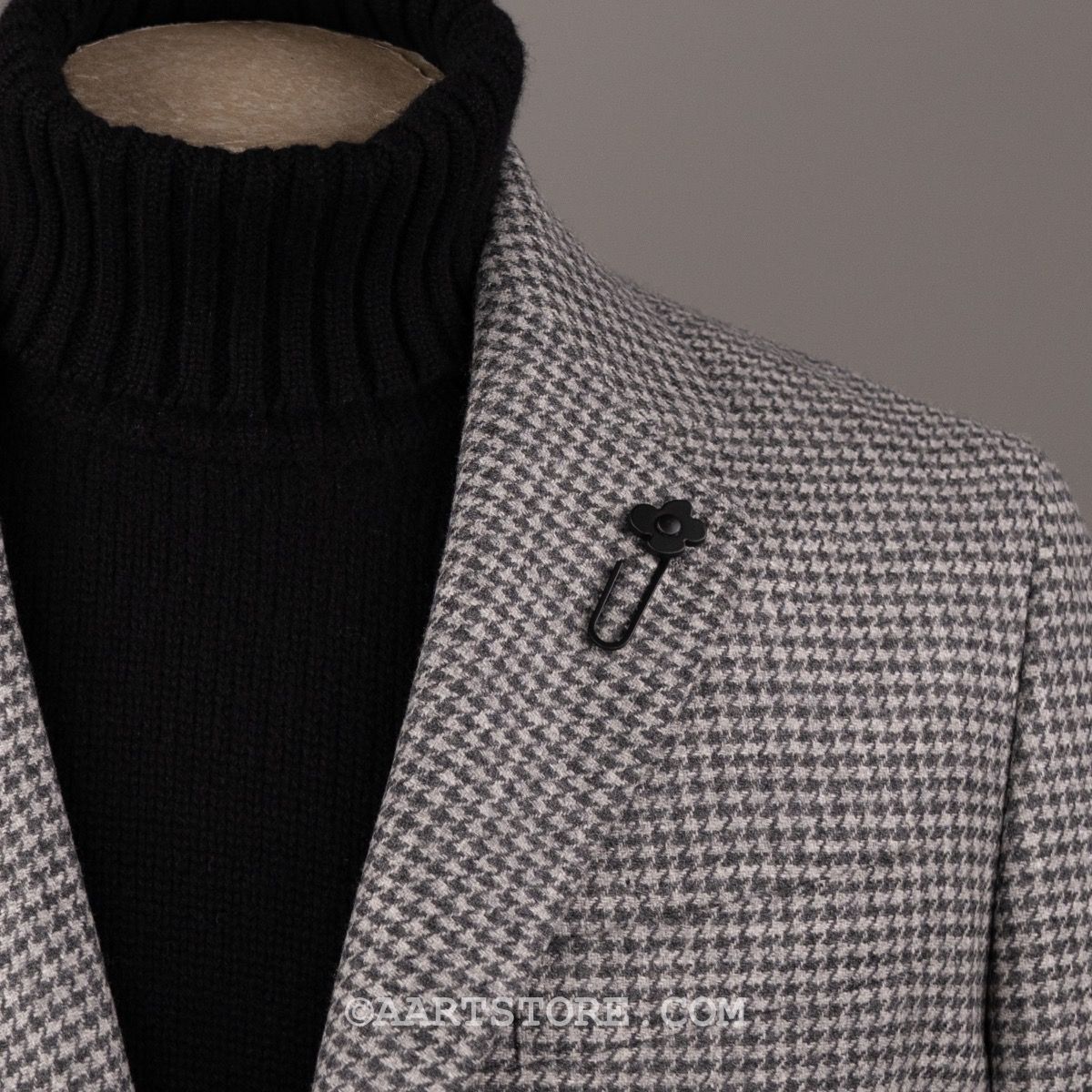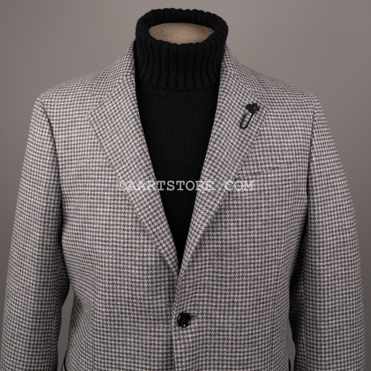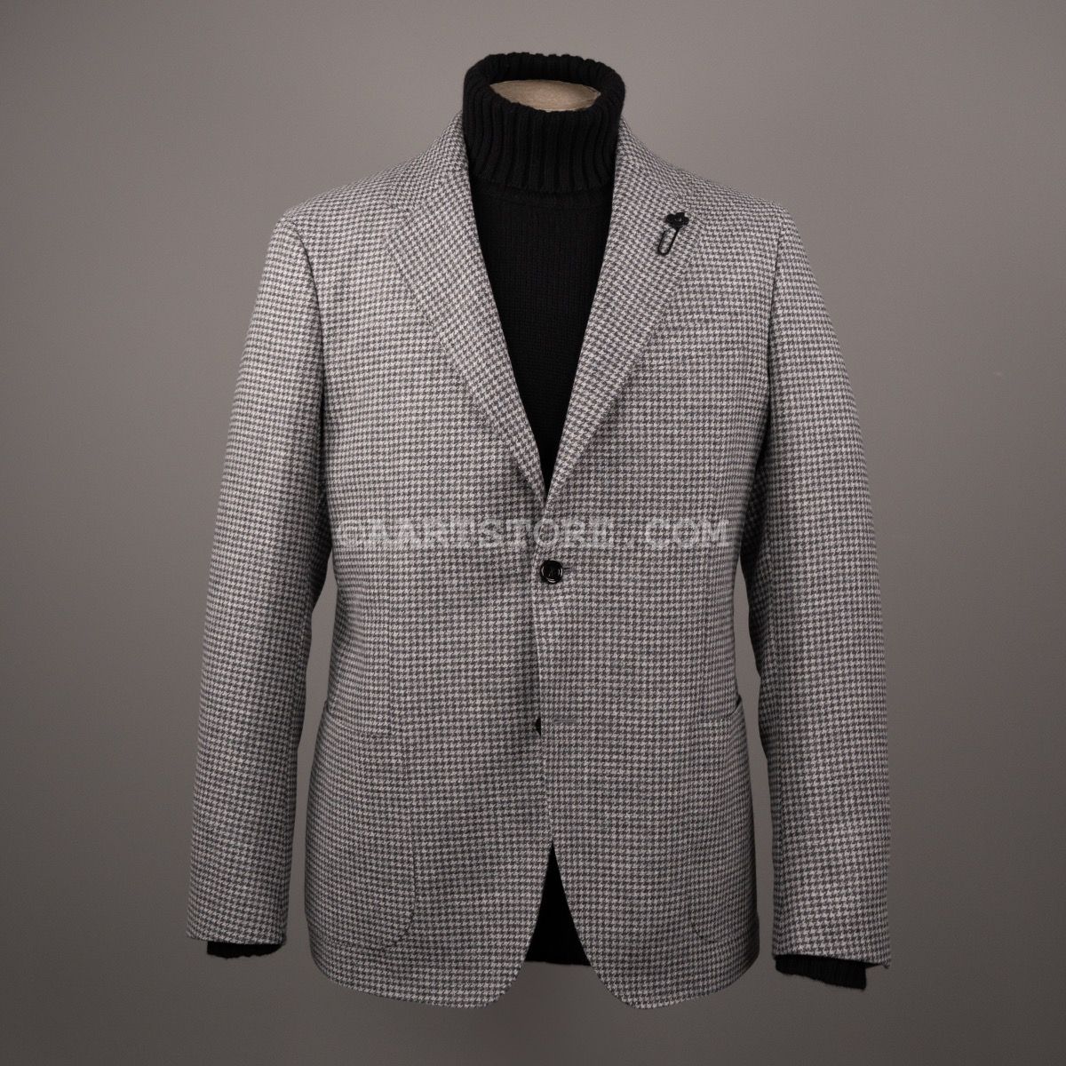 Lardini heeft een heel eigen kijk op de goed geklede man. Jasjes gemaakt met een soort relaxte touch, maar toch wel draagbaar voor meer formele aangelegenheden. Het idee is dat de colberts gemaakt zijn met minimale structuur, maar net voldoende om wel de kleermakers uitstraling te behouden; uniek en prachtig. Dit jasje is andermaal een nieuwe interpretatie van een Britse classic. De grijze houndstooth heeft een verfijnd sportieve uitstraling maar is heel draagbaar. Dit is een jasje dat zowel dressy als iets meer casual te dragen is: mooi bij een flanel broek, maar net zo goed bij denim. Wij zouden het dragen bij een denim shirt en een chino in een lichte kleur.