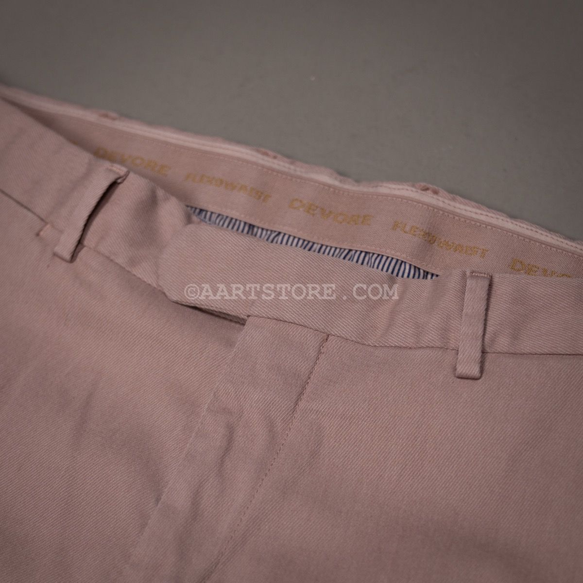 Devore is een Napolitaanse broekenspecialist. Jarenlang maakte dit familiebedrijf vooral broeken voor andere partijen en hierdoor staan ze in de business bekend als een uiterst vakkundige en betrouwbare partner. Sinds een paar jaar maakt Devore hun eigen collectie; bijzonder mooi gemaakte broeken voor een alleszins redelijke prijs. De constructie is prachtig gemaakt van verschillende materialen waardoor een speels effect ontstaat. De broekband is een uitvinding van Devore, de Flexowaist geeft extra comfort bij bewegen en zitten zonder dat de broek afzakt. Het model is eigentijds, met iets meer ruimte en een pasvorm die toeloopt naar de voet. Deze luxury twill chino is een fijne, dunne stof met een lichte keperstructuur. Deze broek biedt heel veel comfort, met veel bewegingsvrijheid. Deze chino is clean genoeg om hem te dragen bij een jasje, maar een linnen shirt of polo past ook naadloos.
