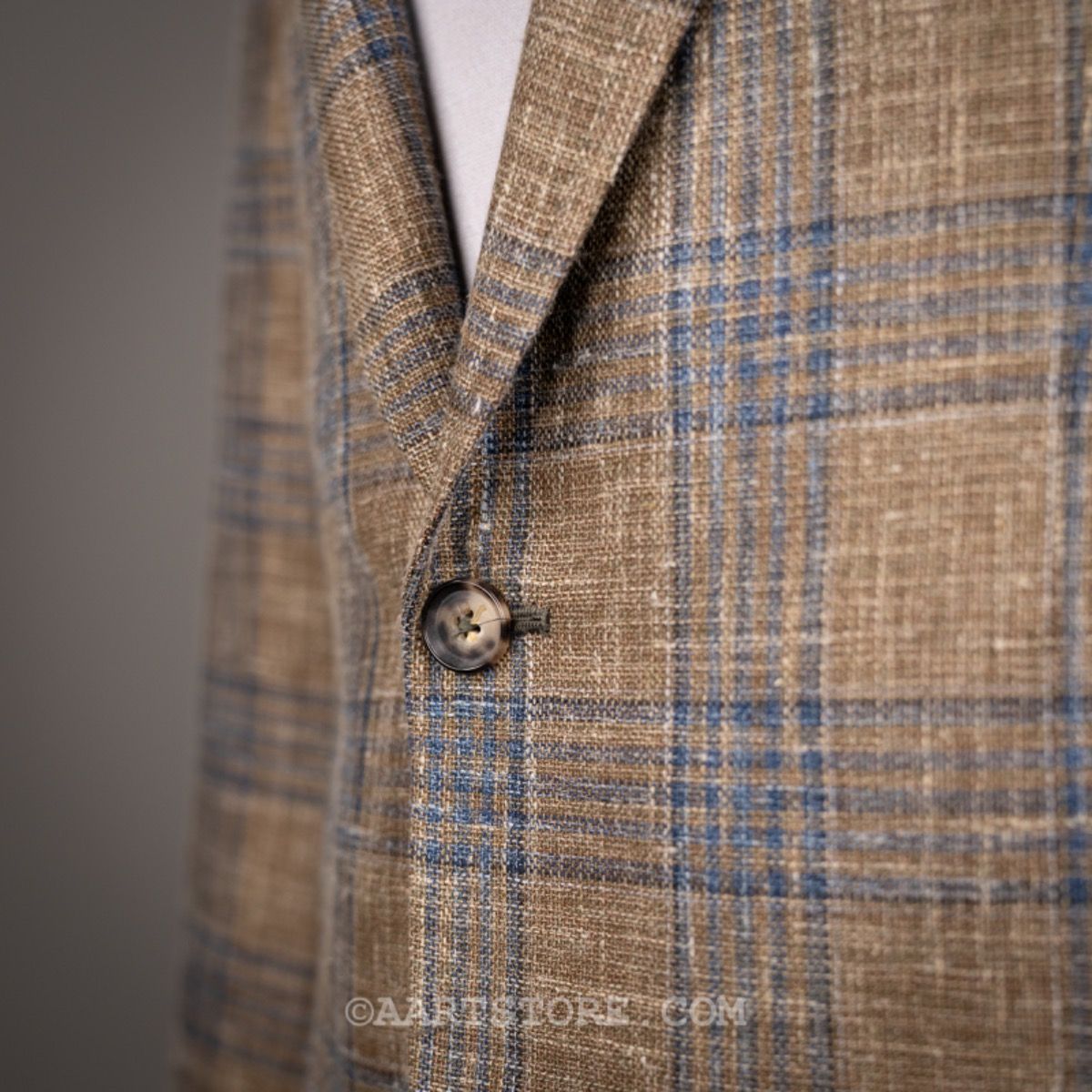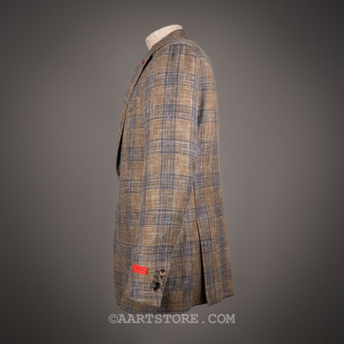 Isaia is synoniem met de absolute top in Napolitaanse kleermakerskunst. De mooist materialen en heel veel handwerk maken het unieke stuks die je als drager omarmen en verwennen. De pakken en jasjes van dit Iconische Napolitaanse merk worden helemaal met de hand gemaakt en dat zie en voel je. De pasvorm is aan het lichaam gesneden, maar het voelt nooit belemmerend of zwaar. De ware kunst zit in het draagcomfort in combinatie met de elegante pasvorm. Dit zomerse jasje heeft die typisch Napolitaanse bravour door kleur en draagbaarheid te combineren. Gemaakt van wol, zijde en een beetje linnen heeft de stof wel een nonchalante uitstraling zonder dat je aan praktisch draagcomfort inlevert. Door de subtiele ruit en de bruine kleur is dit een jasje dat veel draagmomenten kent en gedurende de drie warmste seizoenen gedragen kan worden. Het is prachtig met ene lichte broek maar is ook goed op navy in combinatie met een lichtblauw shirt.