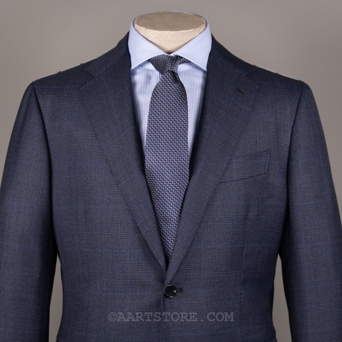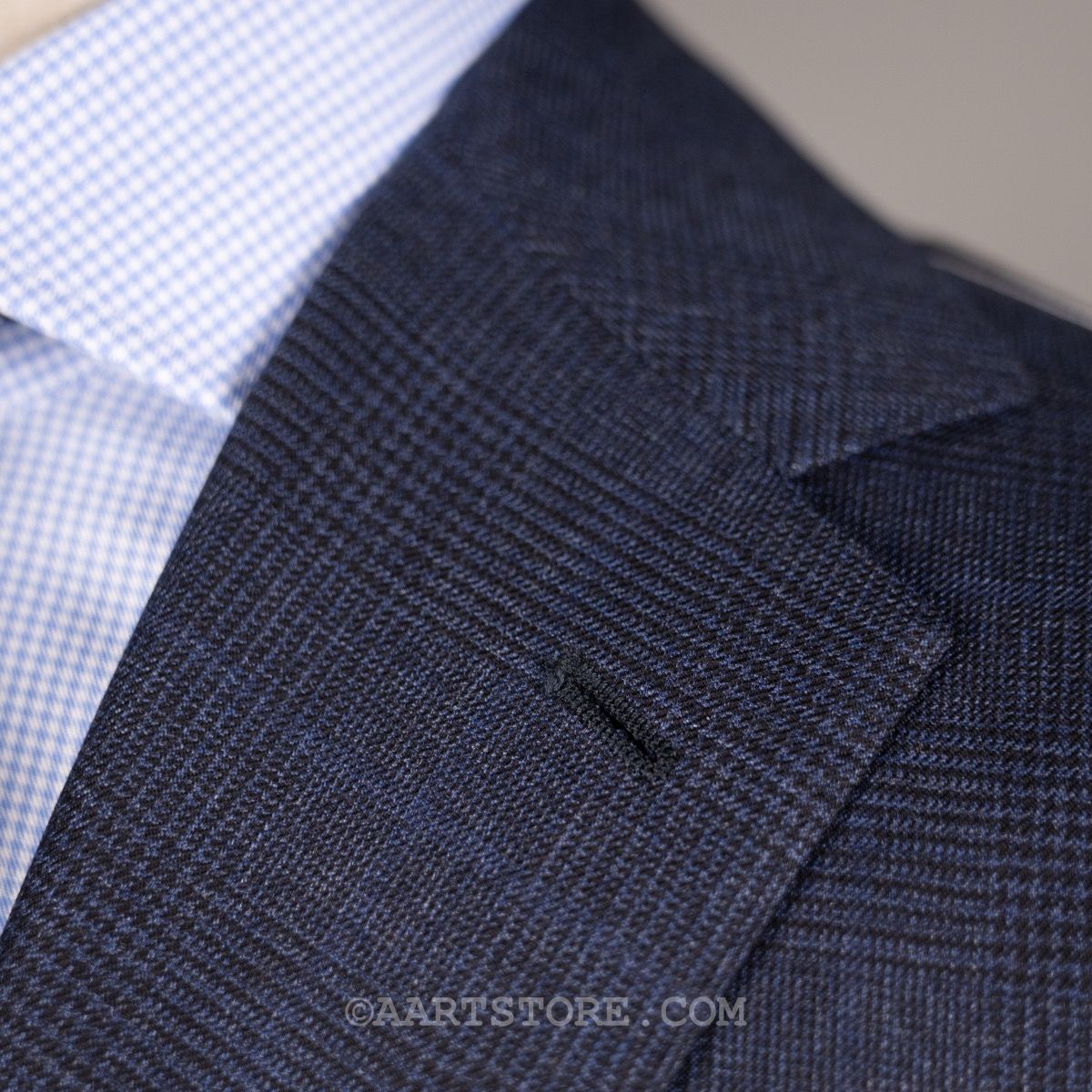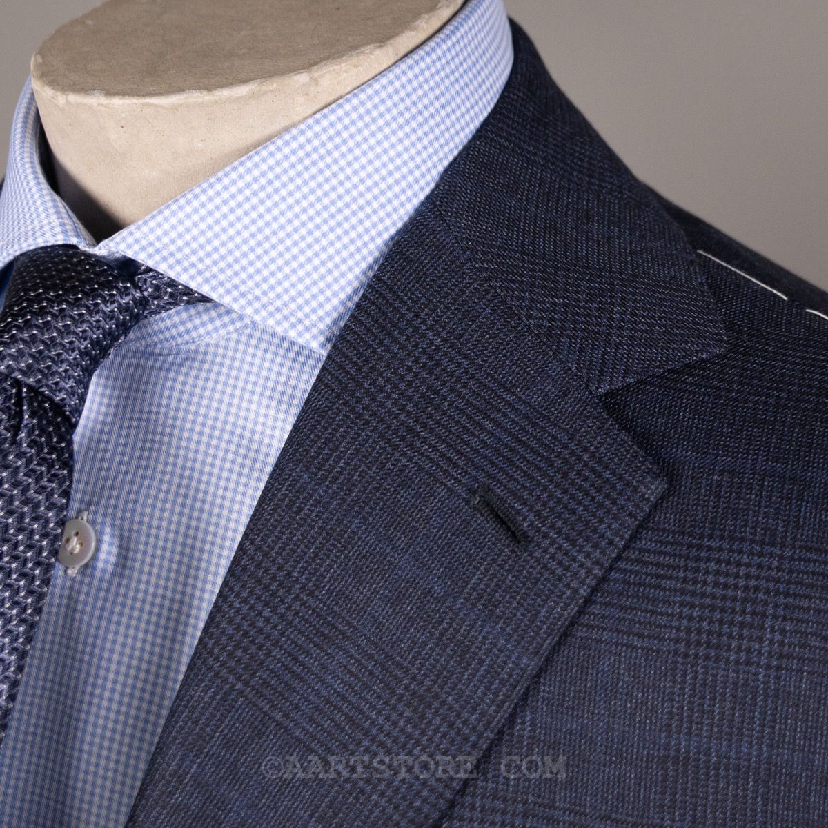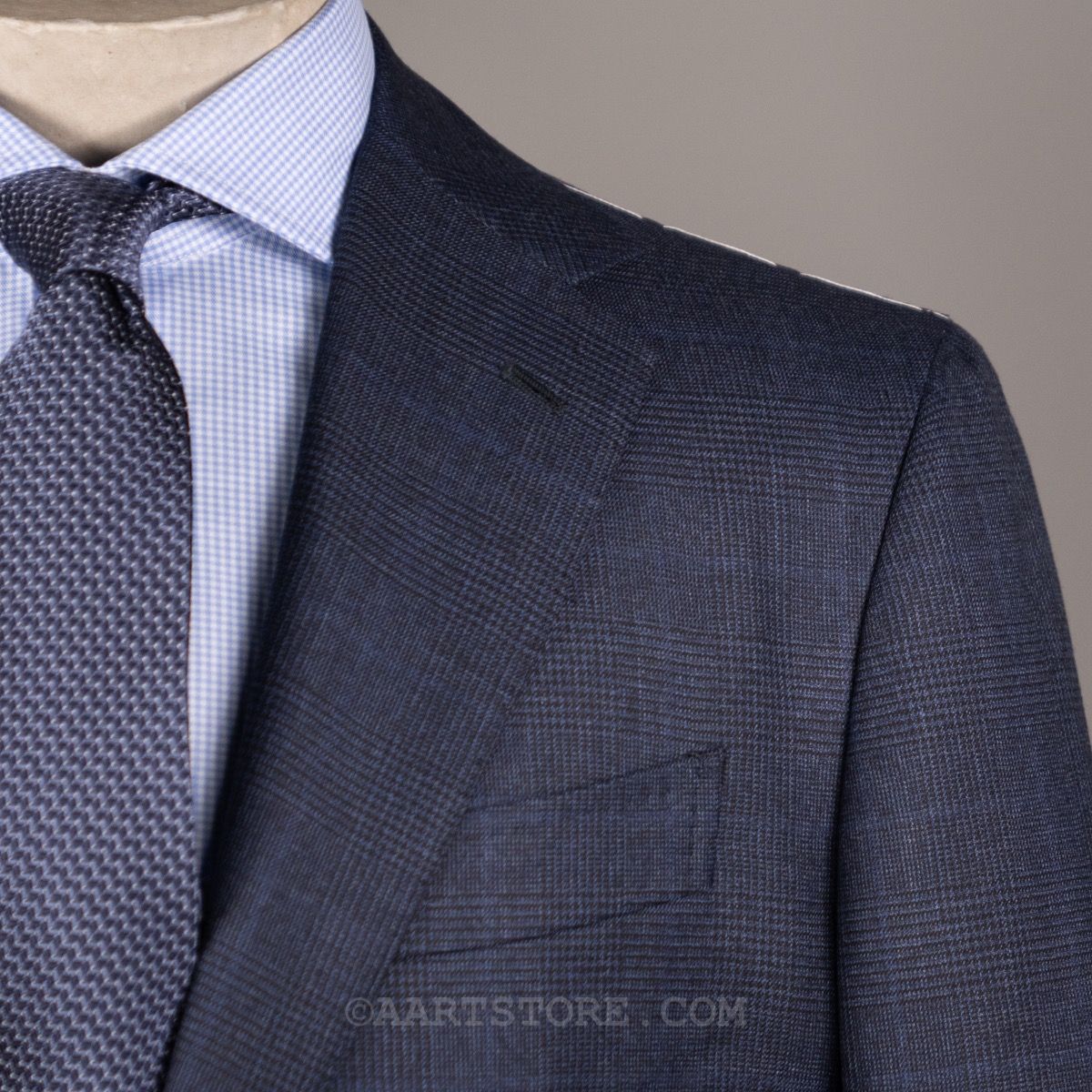 Stile Latino is het label van Vincenzo Attolini en zijn zoon Cesare. Deze telgen van deze beroemde kleermakersfamilie zijn hun label 15 jaar geleden begonnen met maar 1 idee: de allerbeste Napolitaanse tailoring combineren met een eigentijdse, sexy fit. Dat zie je duidelijk terug in dit pak met vage glenncheck. Wat bij de meeste pakkenmakers een uitzondering is, mag je bij Stile Latino als vanzelfsprekend beschouwen: de stof is een super 140 die zelfs nog rijker voelt, de pasvorm is aan het lichaam, maar zonder belemmering en het is een pak dat je iedere dag kunt dragen zonder dat het alledaags is. Kijk ook nog even naar alle details en je bent verkocht. Dit is simpelweg een van de mooiste en mooist gemaakte pakken die je kunt bezitten.