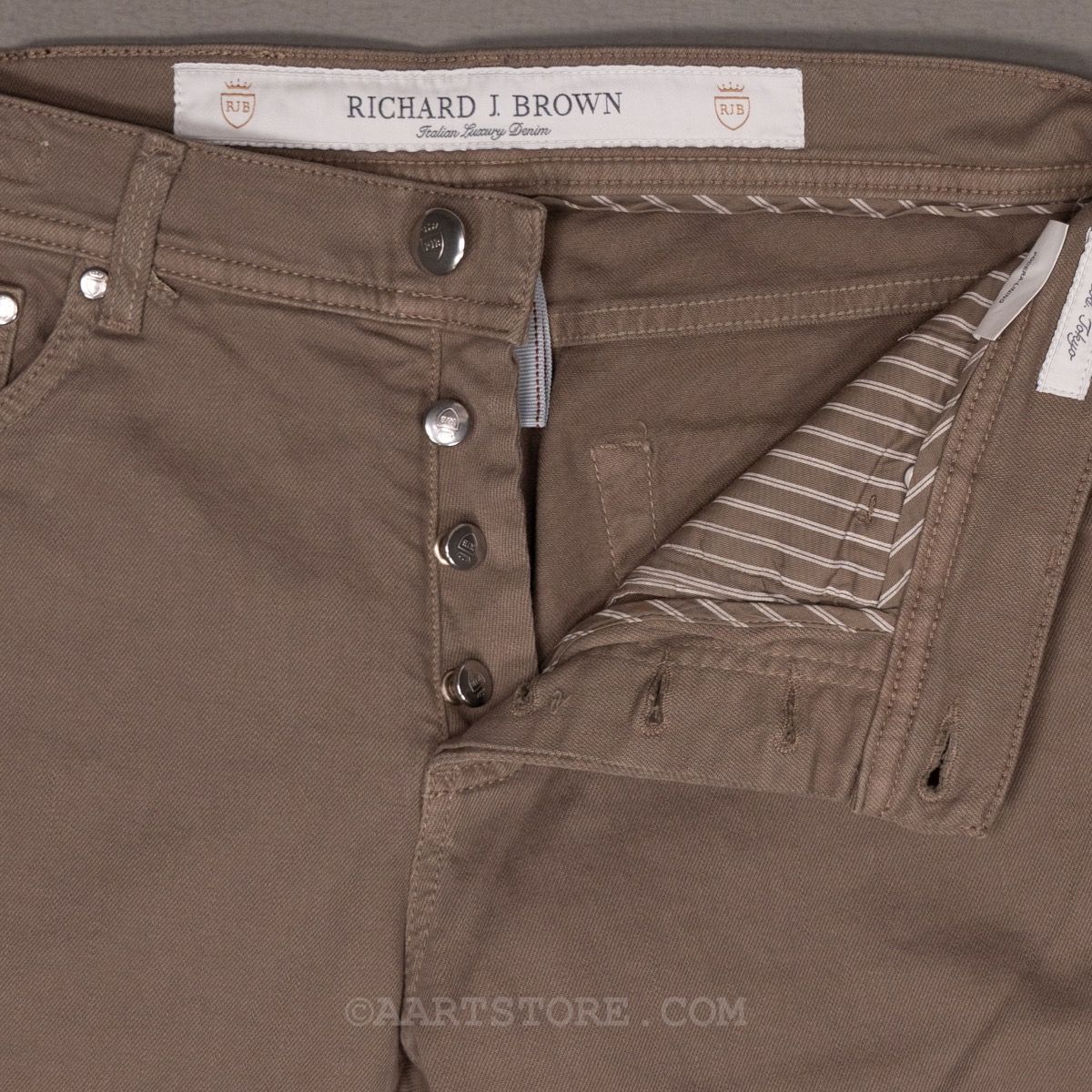 Richard J. Brown is ons favoriete jeanslabel. De toewijding aan kwaliteit en detail maakt het simpelweg de mooiste broek op de markt. Luxe denim, in de zachtste doeken en een pasvorm die de rest overstijgt. Het geheim zit in de iets hogere lijfhoogte in combinatie met de slanke voetwijdte, hierdoor is de jeans comfortabel maar ook eigentijds. Door de subtiele wassingen zijn het broeken die perfect bij een jasje of luxe knitwear passen. Wat je noemt ‘a gentleman’s jeans’. Model Tokyo is een slanke broek die niet skinny is. Deze bull denim is wel een jeans, maar dan niet met indigo geverfd. Dit is een goede vervanger voor een chino, een 5 pocket die heel goed te dragen is met jasjes of gewoon met een shirt en een fijn (cashmere) truitje.