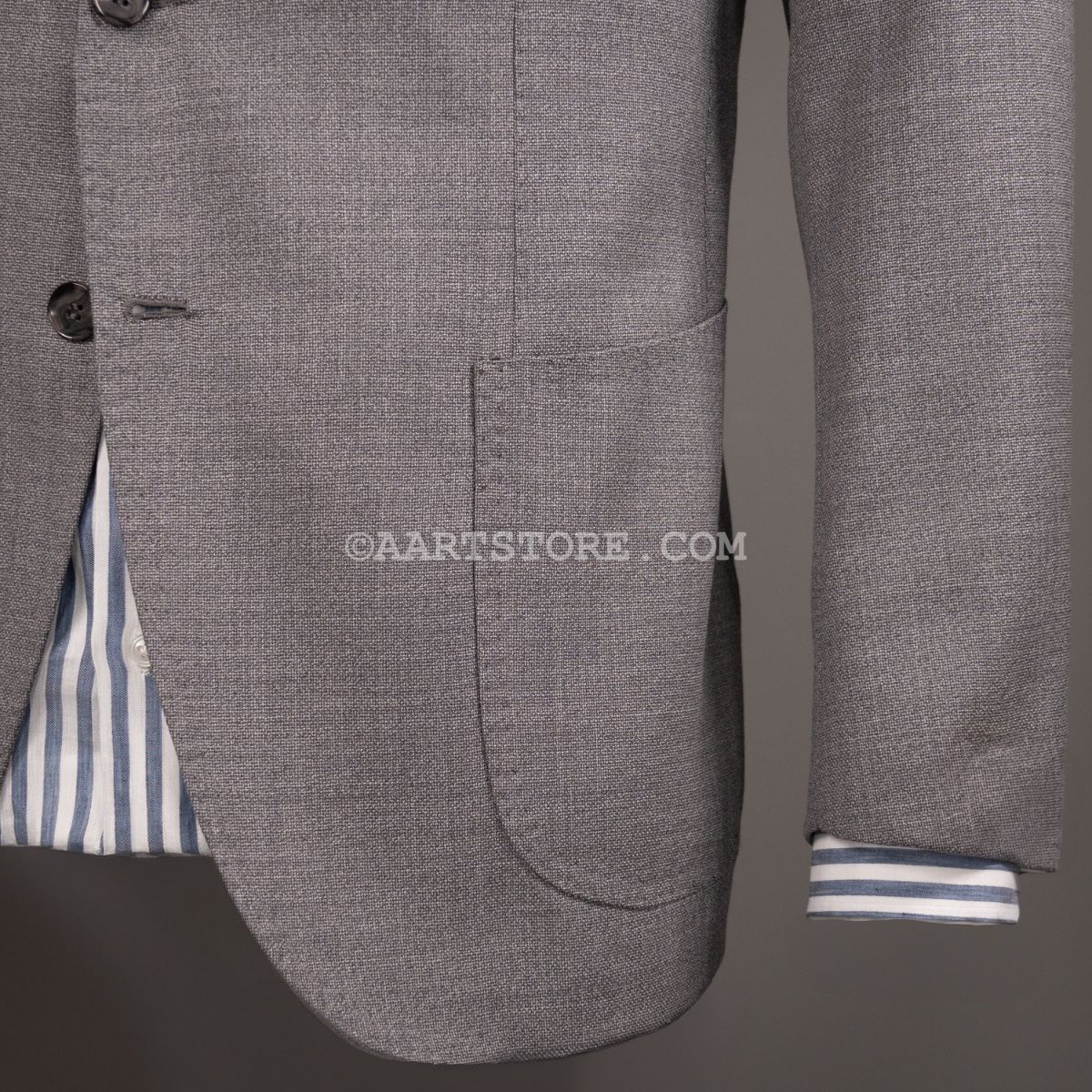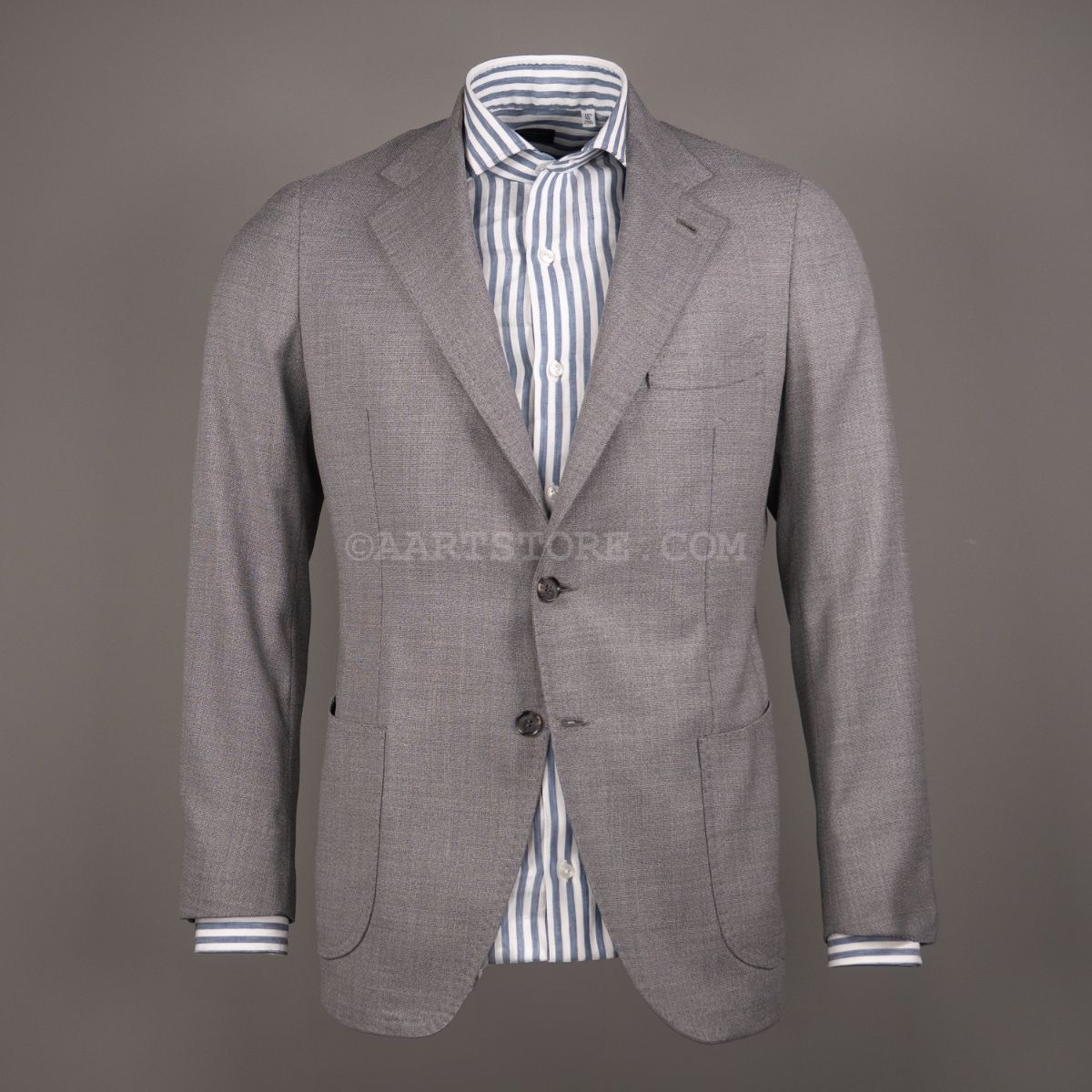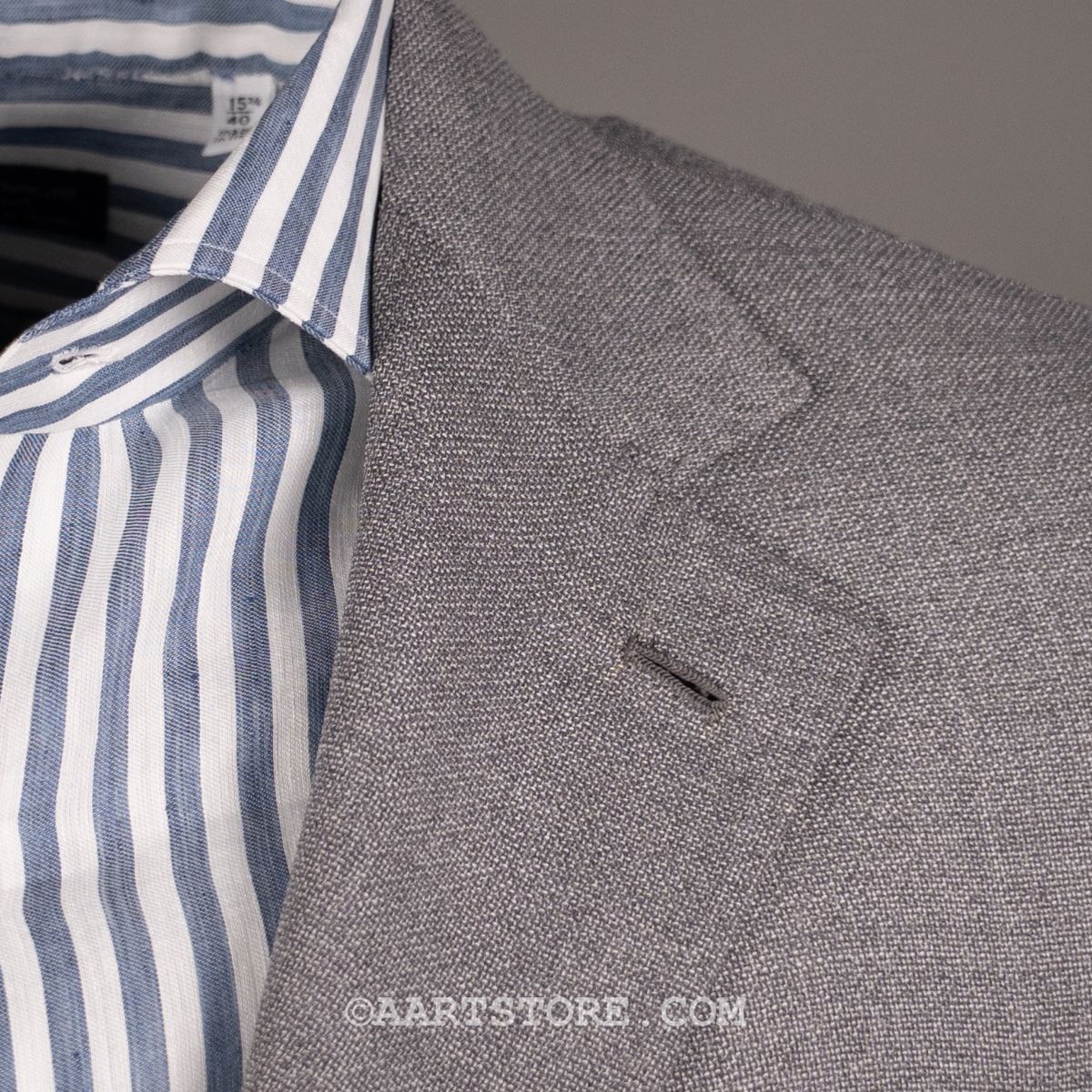 Gabo is een Napolitaanse kleermakerij die traditie combineert met een bijna uitgestorven smaak in stoffen en materialen. Het zijn handgemaakte jasjes die een elegante en comfortabele pasvorm combineren met een sexy silhouet. De Uncinetto is een jasje dat gemaakt van een bijzonder materiaal. Voor deze stof wordt gebruik gemaakt van hoog opgedraaide wollen garens die met een haak techniek tot een open, kreukarme stof worden verwerkt. Dit is een luchtig jasje dat toch tegen een stootje kan. Mooi te dragen bij een wollen Pescarolo broek of een Cohën chino.