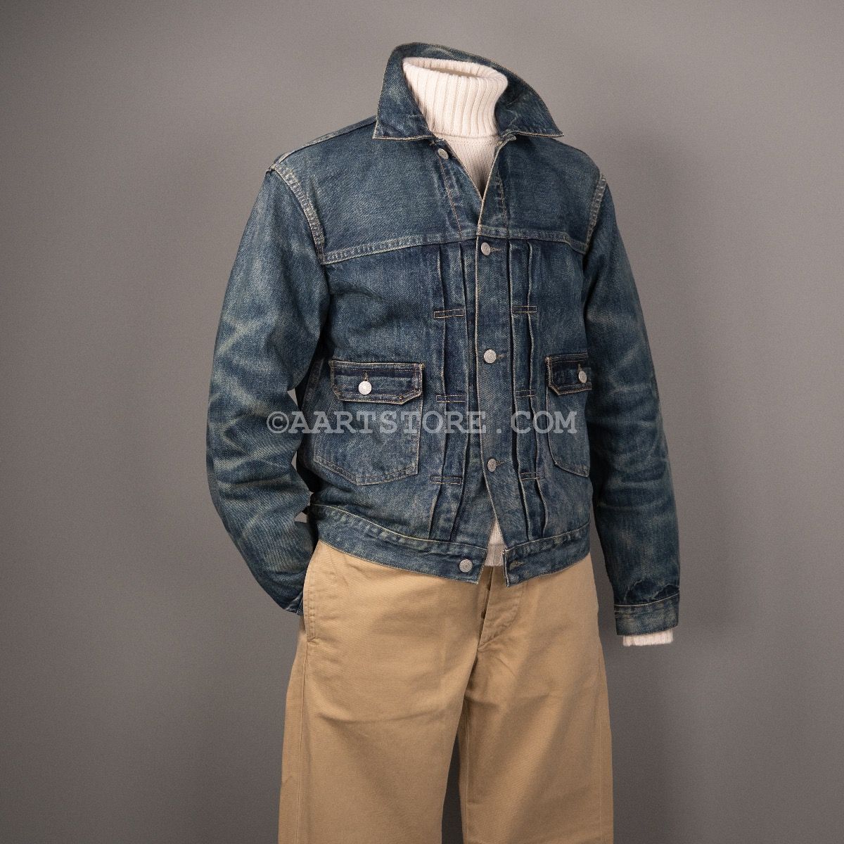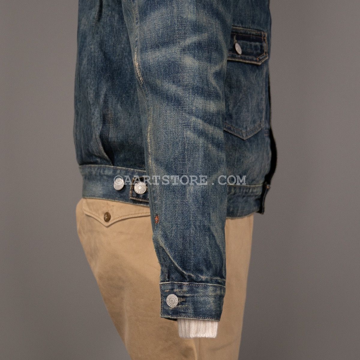 RRL (je zegt Double RL) is een van de meest bijzondere labels in onze collectie. Het hobbyproject van grootmeester Ralph Lauren is vernoemd naar zijn ranch (de Ralph & Ricky Lauren ranch) in Colorado. Het label combineert authentieke Americana met traditionele maakwijzen en doeken. Het wordt in Nederland maar op 3 plekken verkocht en wereldwijd op minder dan 200, echt exclusief. Type 2 is een van de spijkerjacks binnen de RRL-collectie, traditioneel maar toch ook net anders. Geïnspireerd op een jackje zoals het in de jaren ’50 en ’50 van de vorige eeuw gedragen Gesneden uit een mooie afgewassen denim, met een stevige treatment waardoor het jack een dirty en used uitstraling heeft, in goed Nederlands…