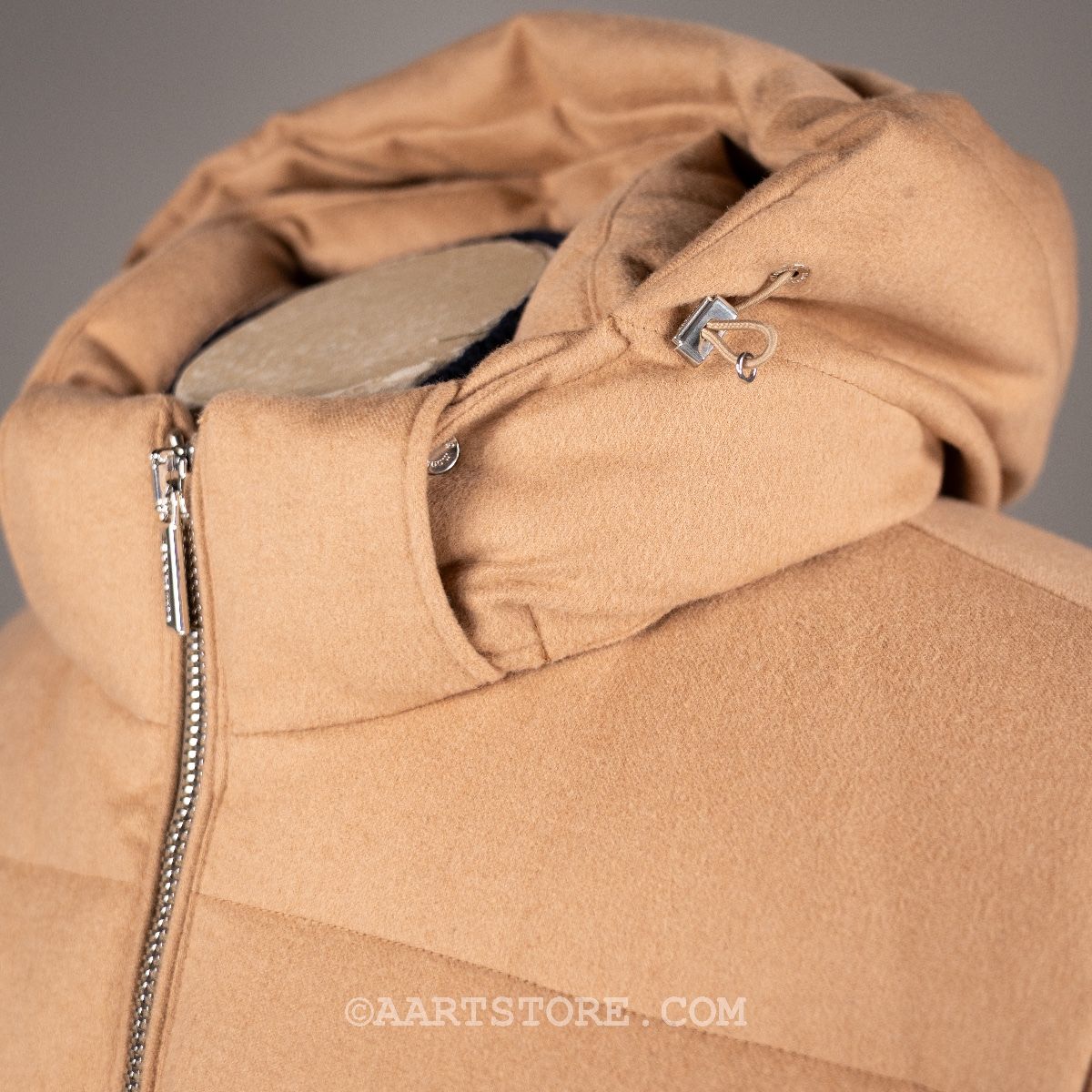 Bij Moorer is het de combinatie van design, de gebruikte materialen én de aandacht voor details waarmee het merk zich onderscheidt van de rest. Deze Valls is een van de meest luxueuze jassen uit de collectie. Gesneden uit een 100% babycamel doek (de wol, niet de huid!) die behandeld is tegen de elementen. Bijzonder is dat deze wol niet geverfd is, maar gewoon in de natuurlijke camelkleur is uitgevoerd. Dit is een heerlijke puffer die best tegen wind, water en sneeuw is opgewassen maar dat wel doet met een hoge aaibaarheidsfactor. Een uniek stuk dat past binnen een rijke quiet lucury collectie; voor de ware connaisseur