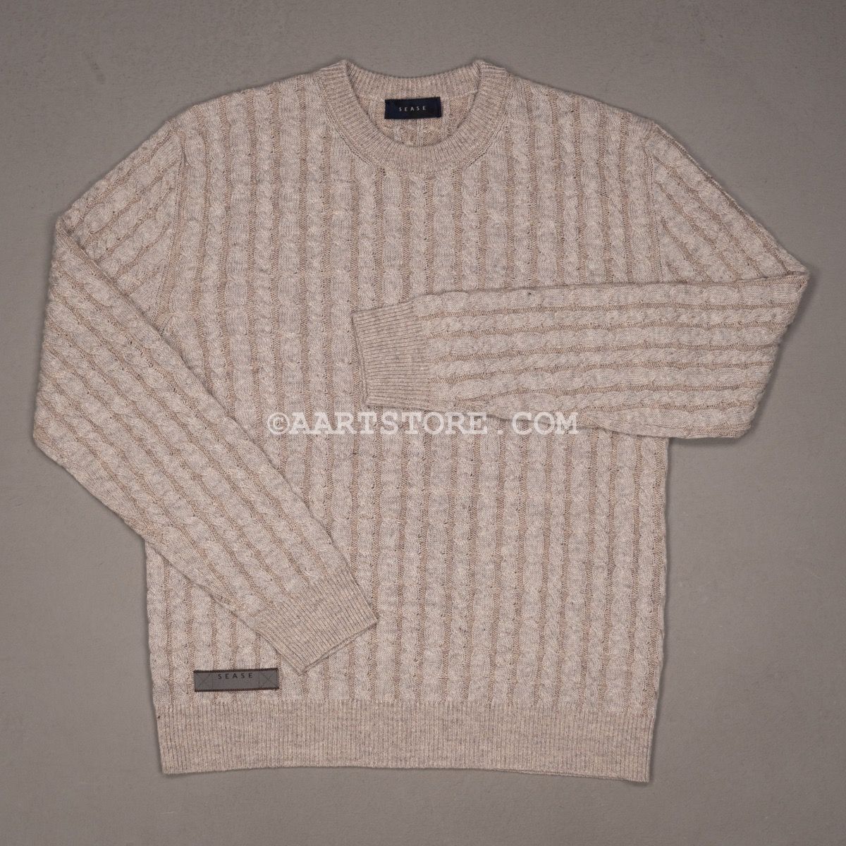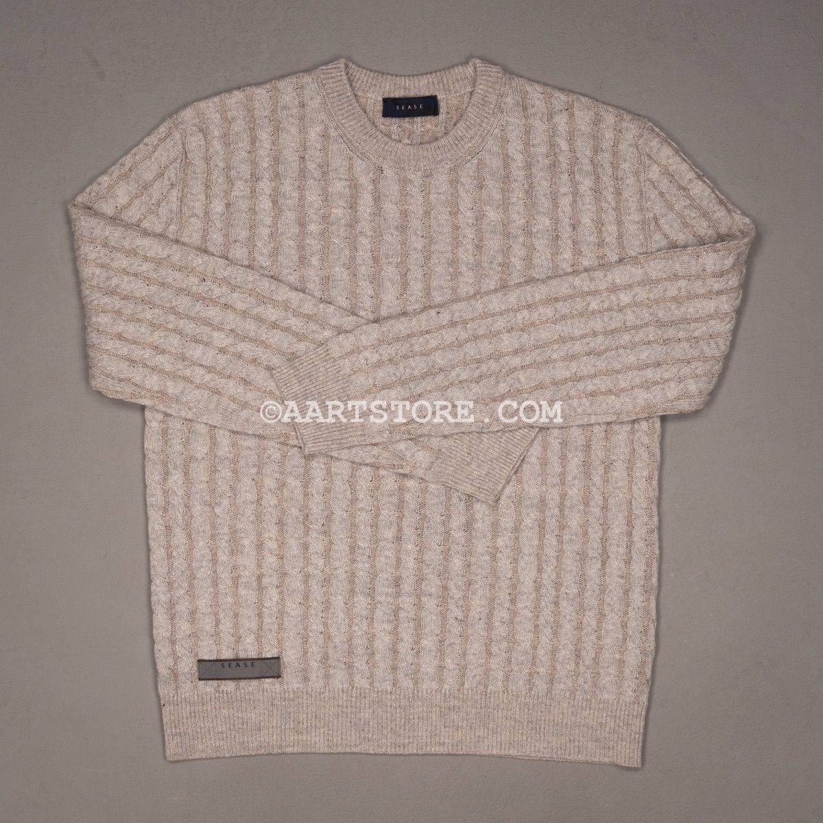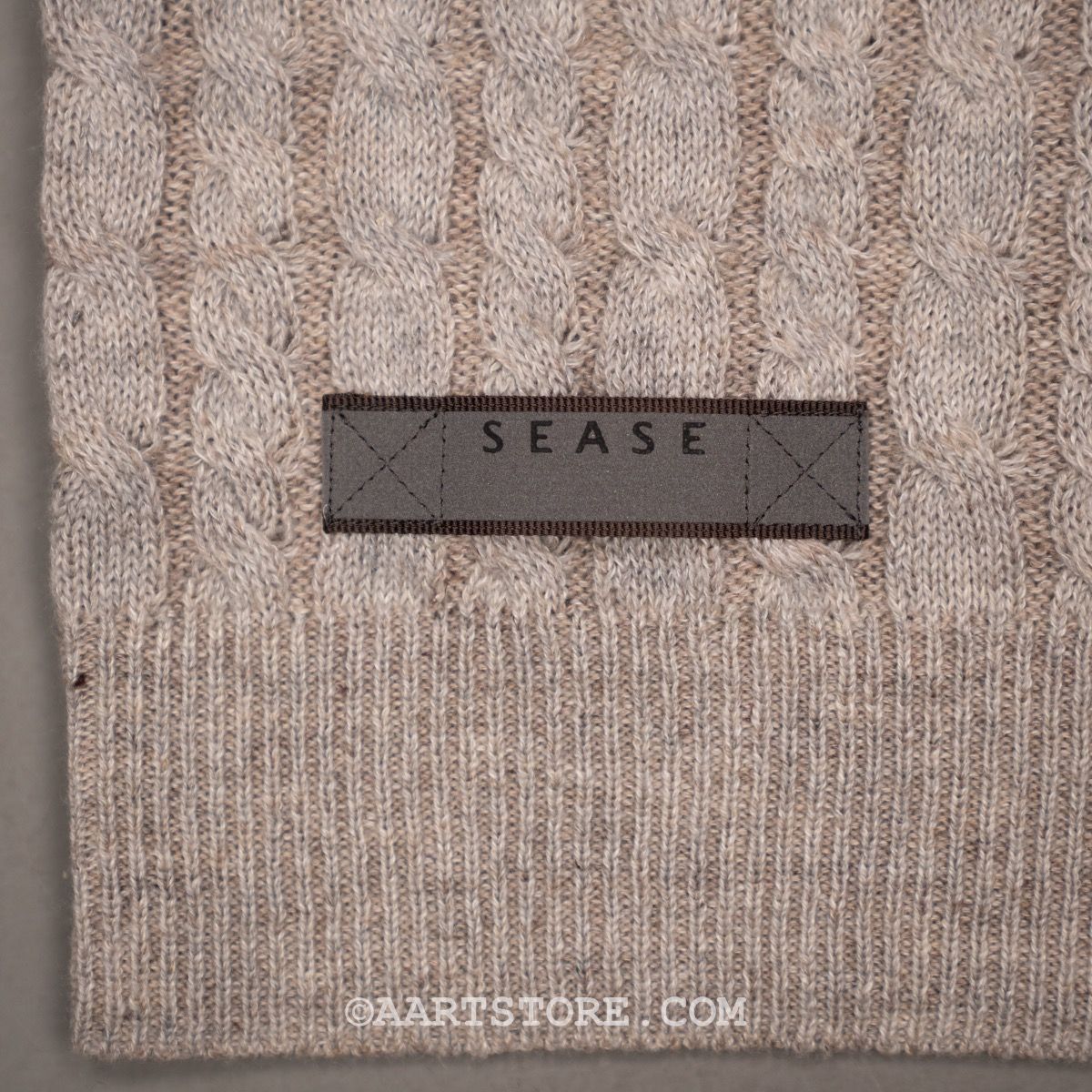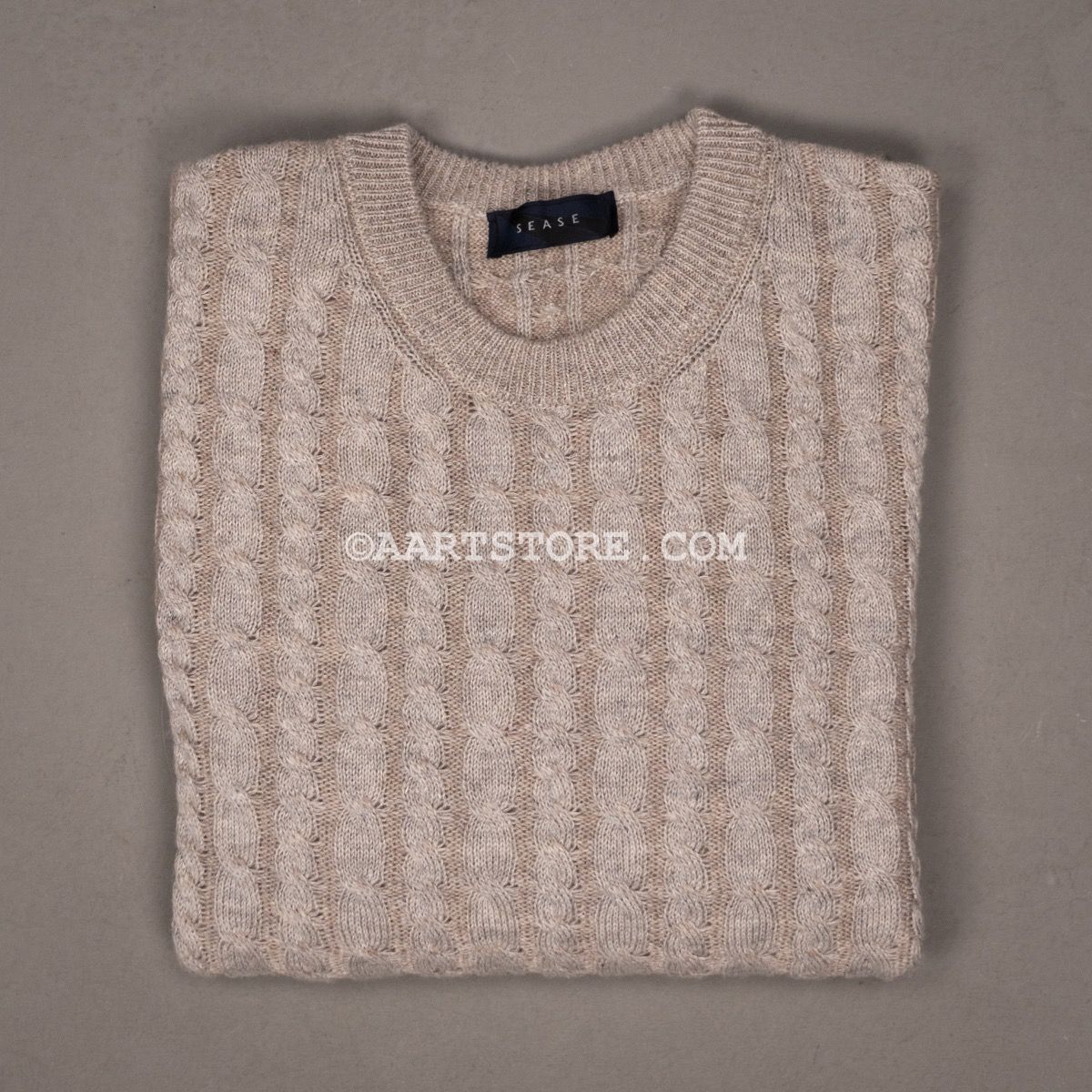 Sease is een nieuw merk maar wel met een rijke heritage. Dit merk is het geesteskind van de familie Loro Piana, dat zij begonnen zijn na de verkoop van hun gelijknamige bedrijf. De naam is een samentrekking van ‘ease’ en ‘sea’; naar de combinatie van het relaxte gevoel en het gebruik van hoogwaardige materialen uit de zeilsport. Sease brengt technische hoogwaardigheid samen met absolute luxe. Deze kabeltrui is gemaakt van een combinatie van cashmere en linnen; een perfect recept voor een zomertrui. Het vanise effect, waarbij er twee verschillende kleuren draad gebruikt worden voor een subtiel kleureffect, geeft de trui een unieke en sportieve uitstraling.