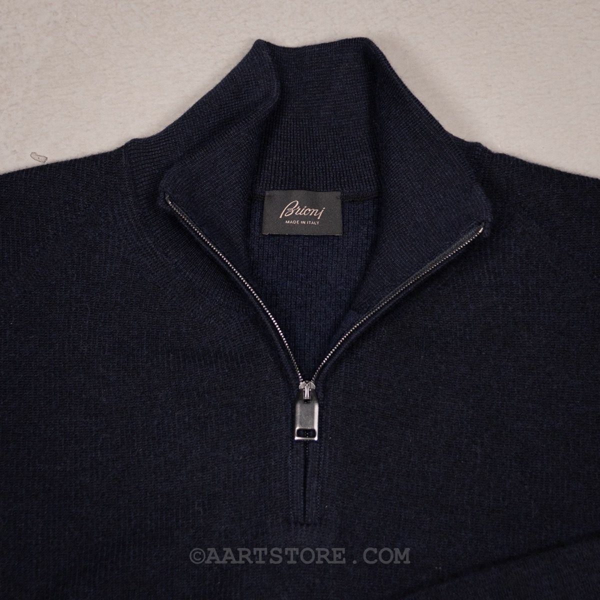 Brioni is een legende die eigenlijk geen introductie nodig heeft… Gesticht in Rome, in 1945 door kleermaker Nazareno Fonticoli en zakenman Gaetano Savini, heeft de kleermakerij sindsdien de grote der aarde gekleed en wordt het gezien als een baken van kwaliteit, kleermakerskunst en stijl. Deze Vanise Zip is een uitermate chique pullover. Gemaakt van twee verschillende kleuren draad in 100% cashmere. Dit is pure luxe om te dragen met een eigentijdse en elegante uitstraling. Draag de trui gesloten over een T-shirt of met de rits verder naar beneden bij een shirt en iets wijdere chino.