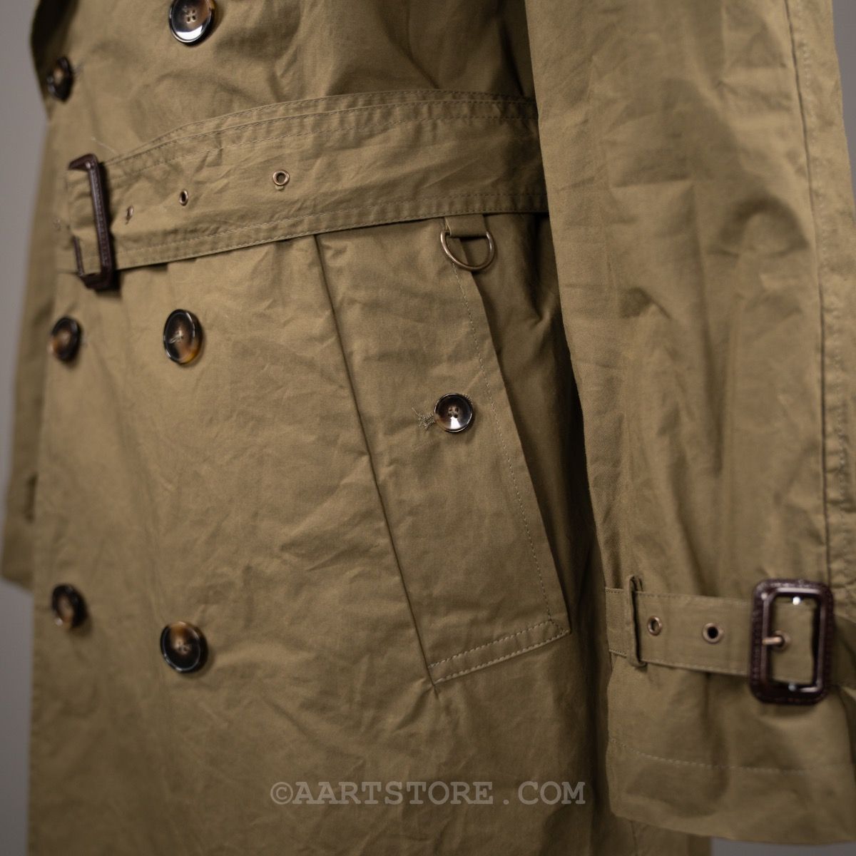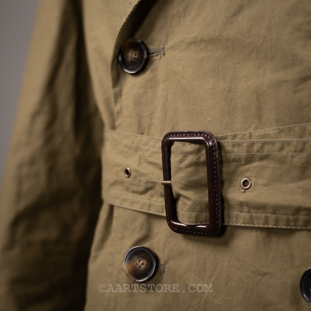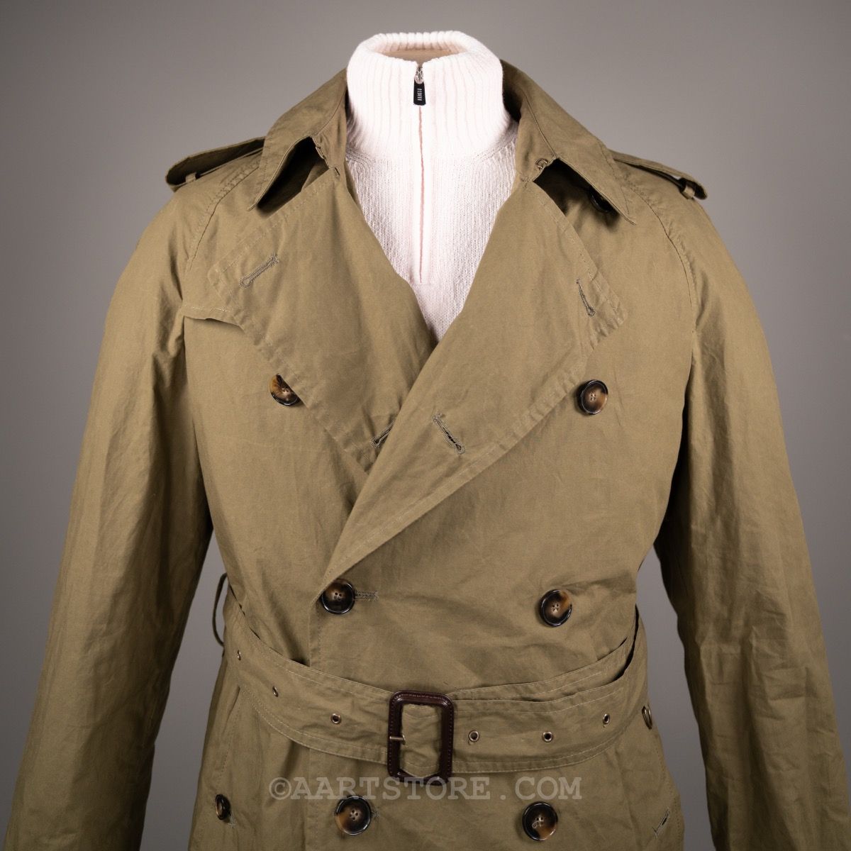 L’impermeabile is een van onze nieuwste merken maar tegelijkertijd is het ook een van de oudste merken in ons arsenaal. Het stamt uit de jaren na de eerste wereldoorlog als Italiaans antwoord op de toen mateloos populaire regenjassen van Britse merken als Aquascutum en Burberry. Daarna is het merk wat in vergetelheid geraakt totdat de huidige eigenaar het ‘vond’ in de nalatenschap van zijn vader… Deze Vasco trench is een zomerse en eigentijdse versie van de klassieke trenchcoat. Door het gebruik van een licht gewaxt (het is niet vet) materiaal en de ongevoerde constructie is dit een zwierige en licht casual zomerjas.