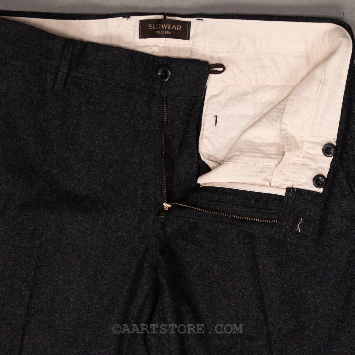 De slacks canvas chino van Incotex is een lekker herfstige broek. Een moderne pasvorm, medium rise met een rechtere pijp (niet heel wijd, maar niet skinny) in een bijzondere kwaliteit: gekrompen flanel. D§it geeft de wollen stof een iets zachtere uitstraling en geeft een natuurlijke stretch. Dit is een bijzondere maar ook heel draagbare broek. Een paar flanel slacks die perfect op zijn plaats is bij een jasje of bij een lekkere (dikke) trui. Het materiaal heeft een zachte, aaibare uitstraling dat je hele outfit iets knus geeft.