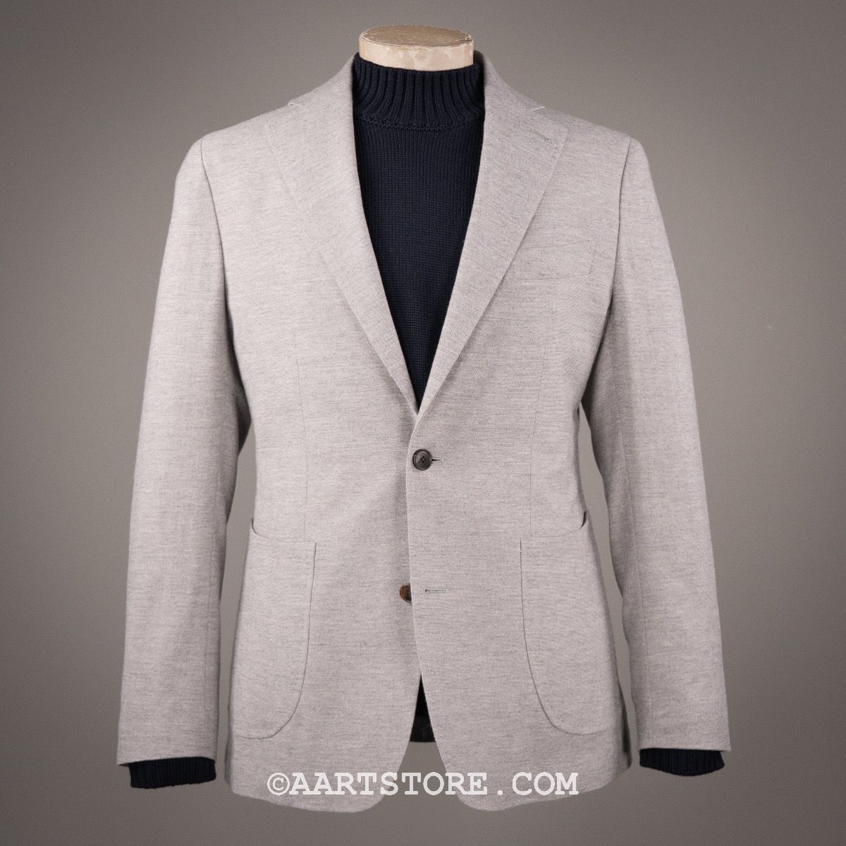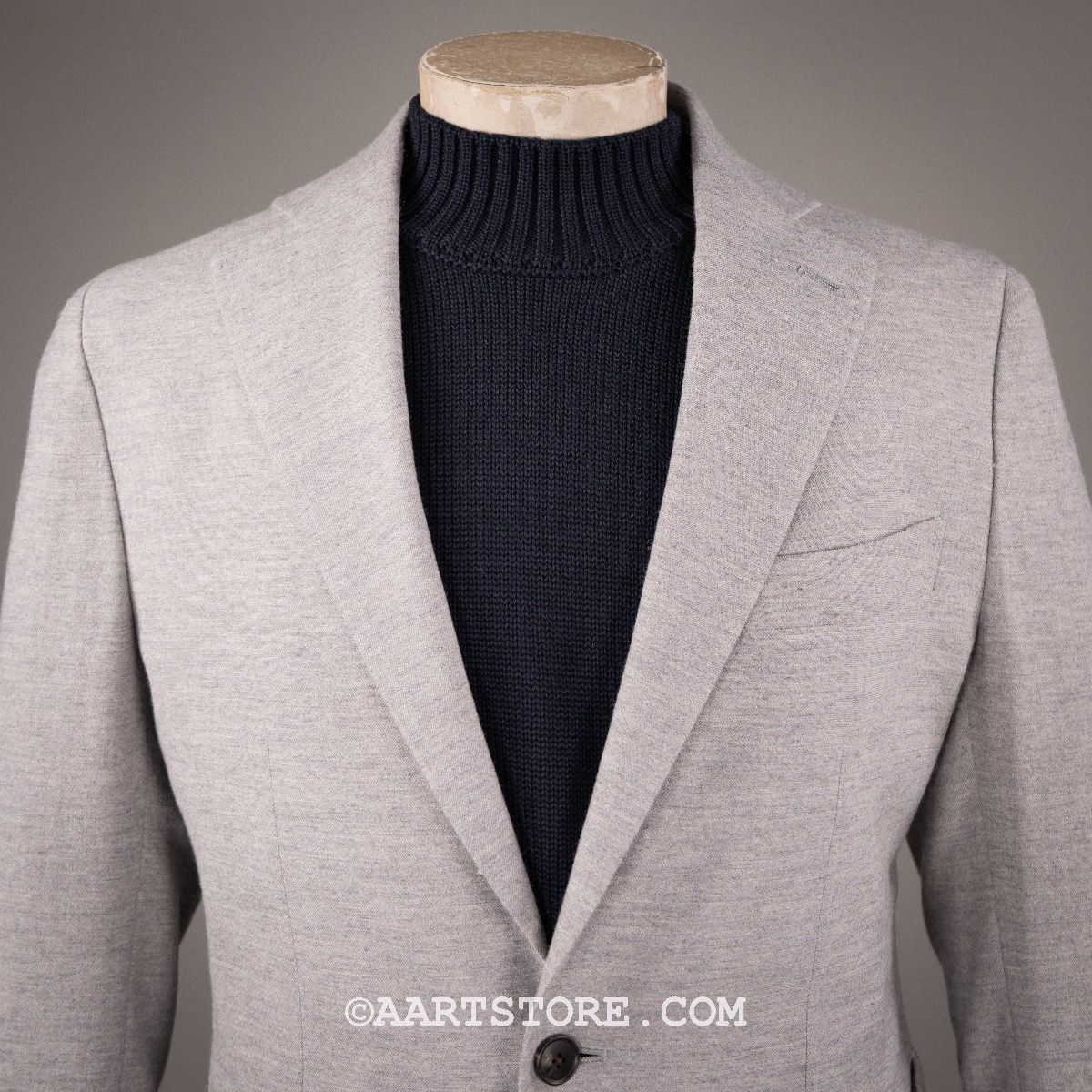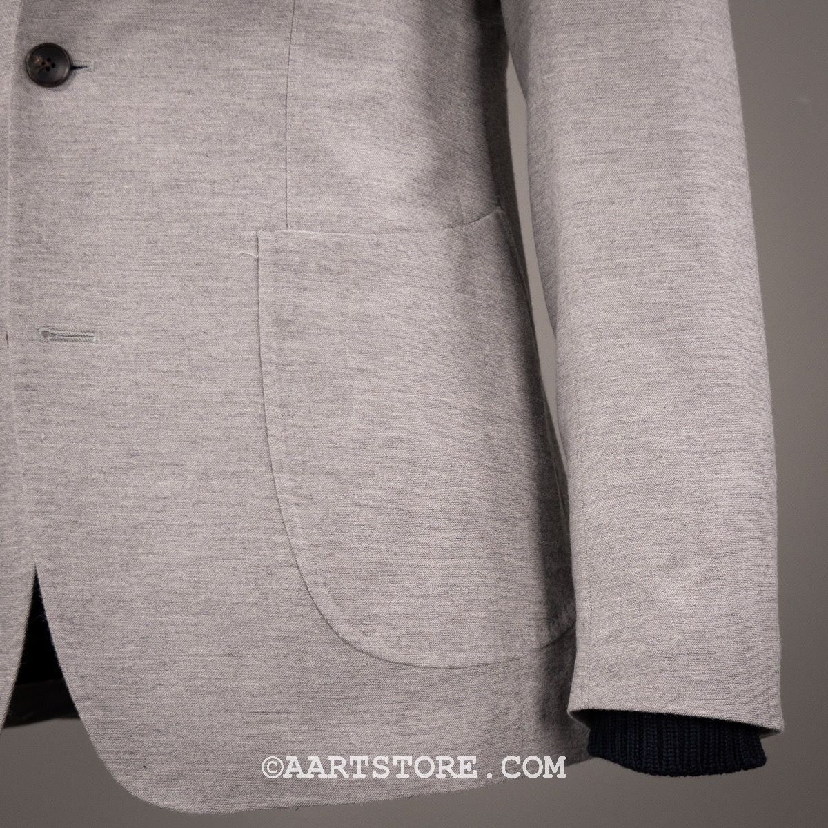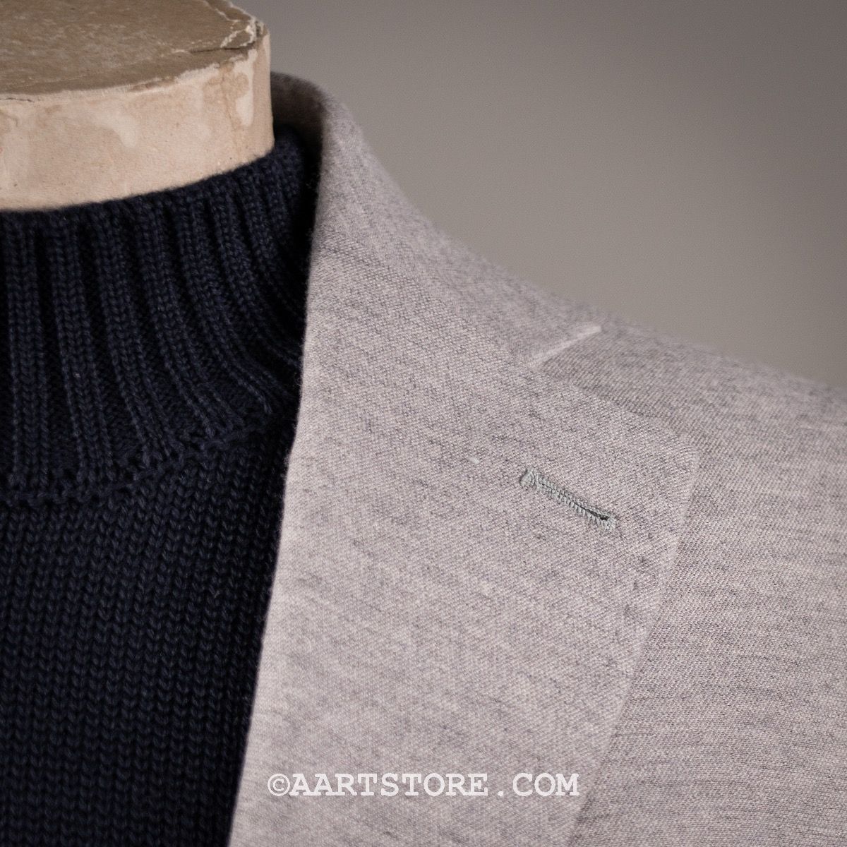 Dit AART jasje volgt de Napolitaanse school, in een luxe stof van Loro Piana. Gesneden met een extreem dunne, zachte schouders en een zo licht mogelijke constructie; het is haast geen jasje. De stof is uniek, met een gebreid effect en gemaakt van een mix van cashmere, wol en lyocell. Het voelt zacht, beweegt met je mee (het is geen stretch maar heeft wel dat effect) en biedt heel veel gebruiksgemak. Dit is eenn jasje om mee te reizen en mee te verschijnen. Dit jasje is prachtig op iedere chino, maar ook mooi bij grijs wol of denim.